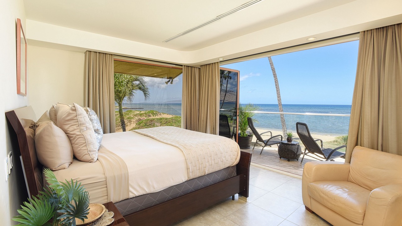 Nestled on the picturesque South Maui coastline, Aloha Villas Resort offers a luxurious beachfront retreat for your next family gathering. This stunning 4-villa complex provides an unparalleled oceanfront experience, combining spacious accommodations, world-class amenities, and breathtaking views. The property consist of 4 individual condos. Two of the villas are single level three bedroom, three bath condos with amazing 180 degree oceanviews. The other two units are three bedroom three and a half two story condos with great south facing oceanviews. The ideal occupancy for each villas is six guests. We don't have sleeper sofas. The ideal max occupancy for the resort is 24. There is a roll away cot in each unit so you could accommodate 28 people.