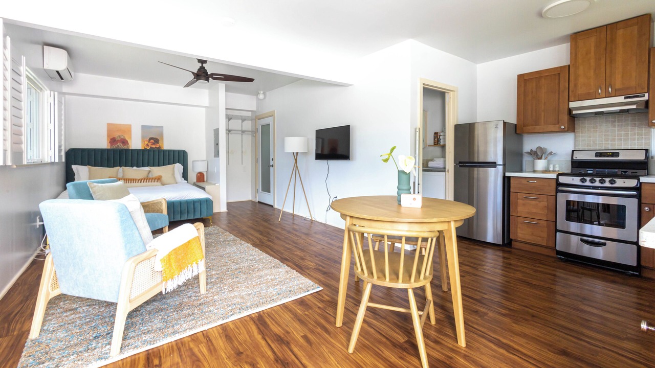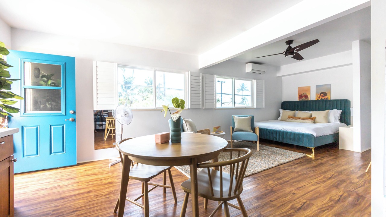 A Beach home away from home, with private entrance and parking gate, ensures a memorable and relaxing authentic Hawaiian vacation. A nicely renovated Large Studio home on the East side of the island a block away from Lanikai Beach! This "beach" studio offers unforgettable proximity to one of the top beaches on the island.