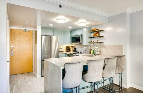 Your dream island escape awaits at this Honolulu vacation rental! Located in the iconic Ilikai Hotel, this 1-bathroom studio boasts a beautiful interior, free parking, and access to the resort's pools and on-site restaurants. Sip your morning coffee on the balcony while taking in the breathtaking ocean views. Then, enjoy sunbathing and swimming at Kahanamoku Beach and Waikīkī Beach. After exploring all that the area has to offer, retreat inside to unwind while watching the Smart TV.