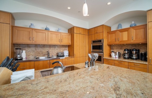The amenities provided within The Grand Seascape K407 equal those of even the most rich hotel suites. This privately owned, uniquely decorated and professionally managed upper level corner villa is simply exceptional, within Wailea Beach Villas or anywhere else in Hawaii. Our favorite features include the Tommy Bahama sleigh bed, European import cabinets, nine foot lofty ceilings, honed marble floors, spacious floor plan, granite and hard wood finishes, luxurious Hotel Collection bath and bed linens, deep ultra-plush Serta perfect sleeper pillow-top beds, exceptional electronics with premium television channels, and the fully equipped dedicated work space. The quality of furnishings, electronics, beds, bed and bath linens, kitchen goods, household supplies, and personal service, are truly unsurpassed in comparison to other generic rental pool units.